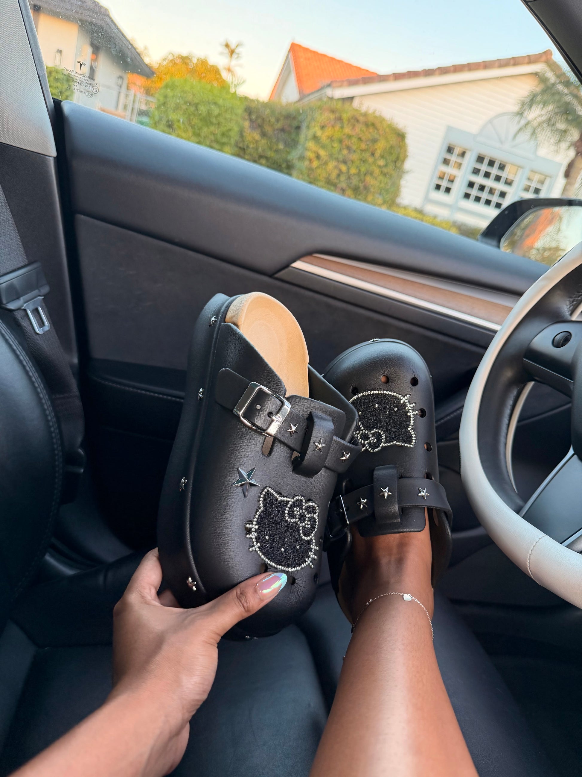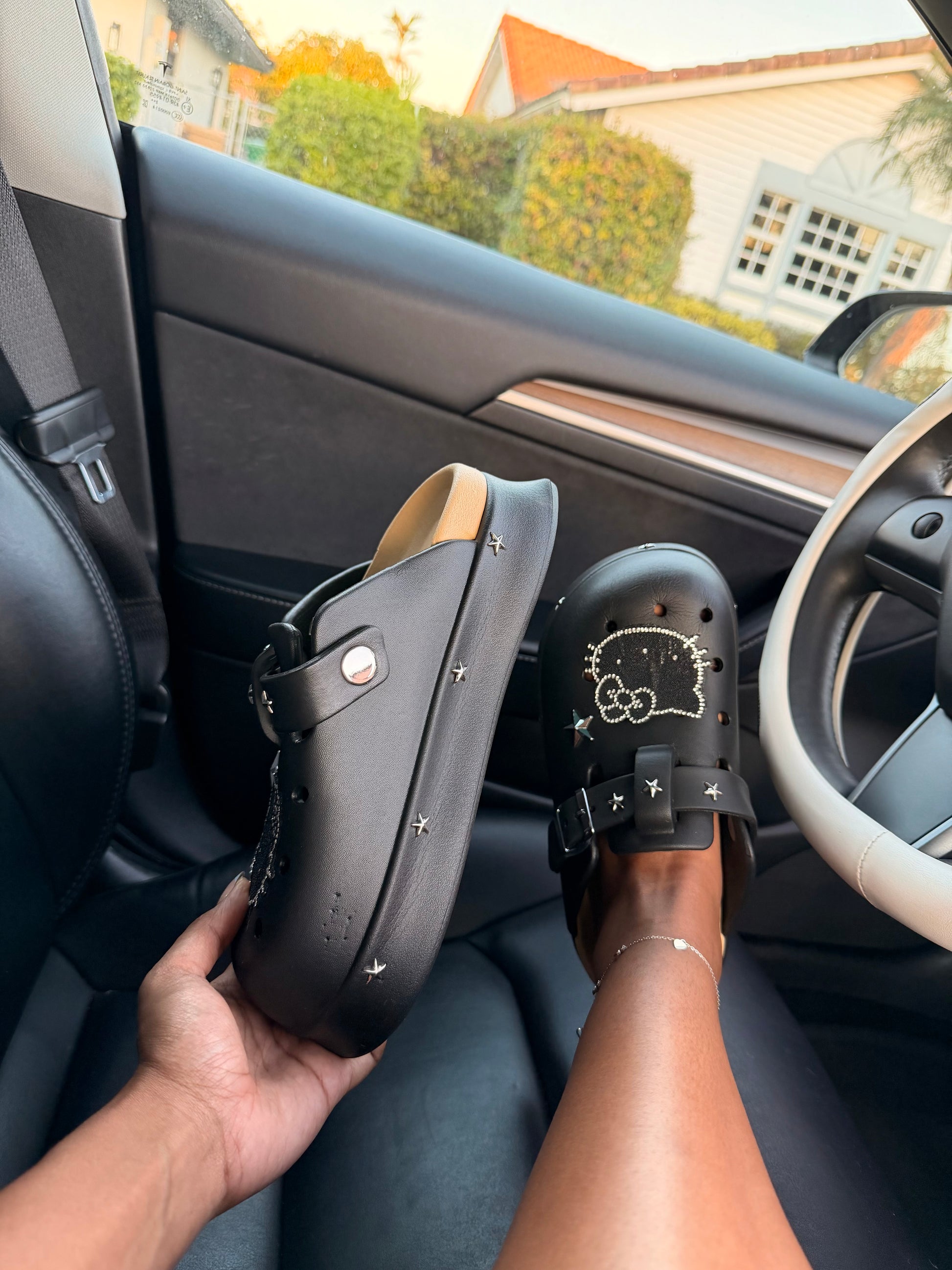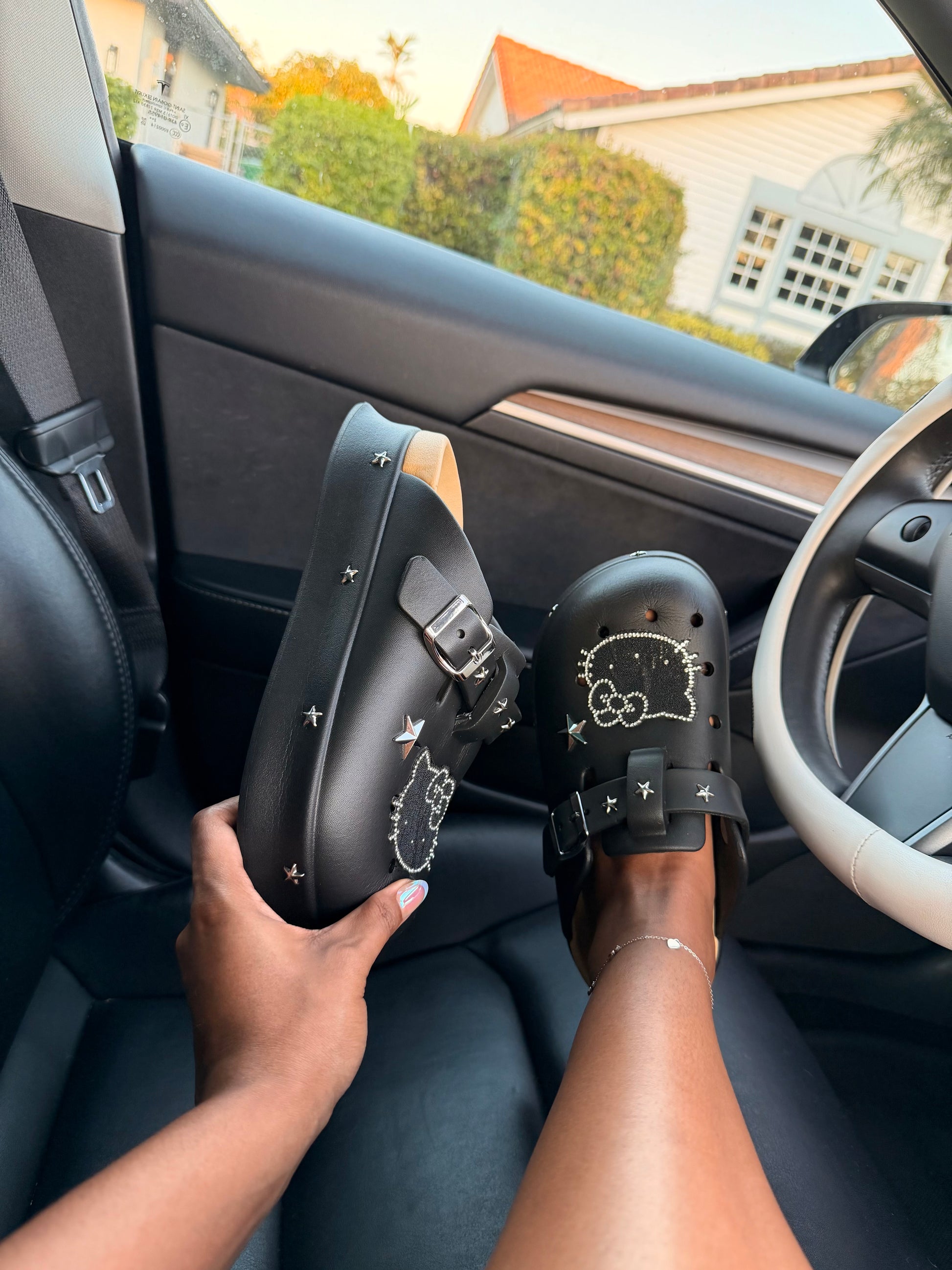 ✨ Black Crystal Kitty Clogs – Limited Pre-Order ✨