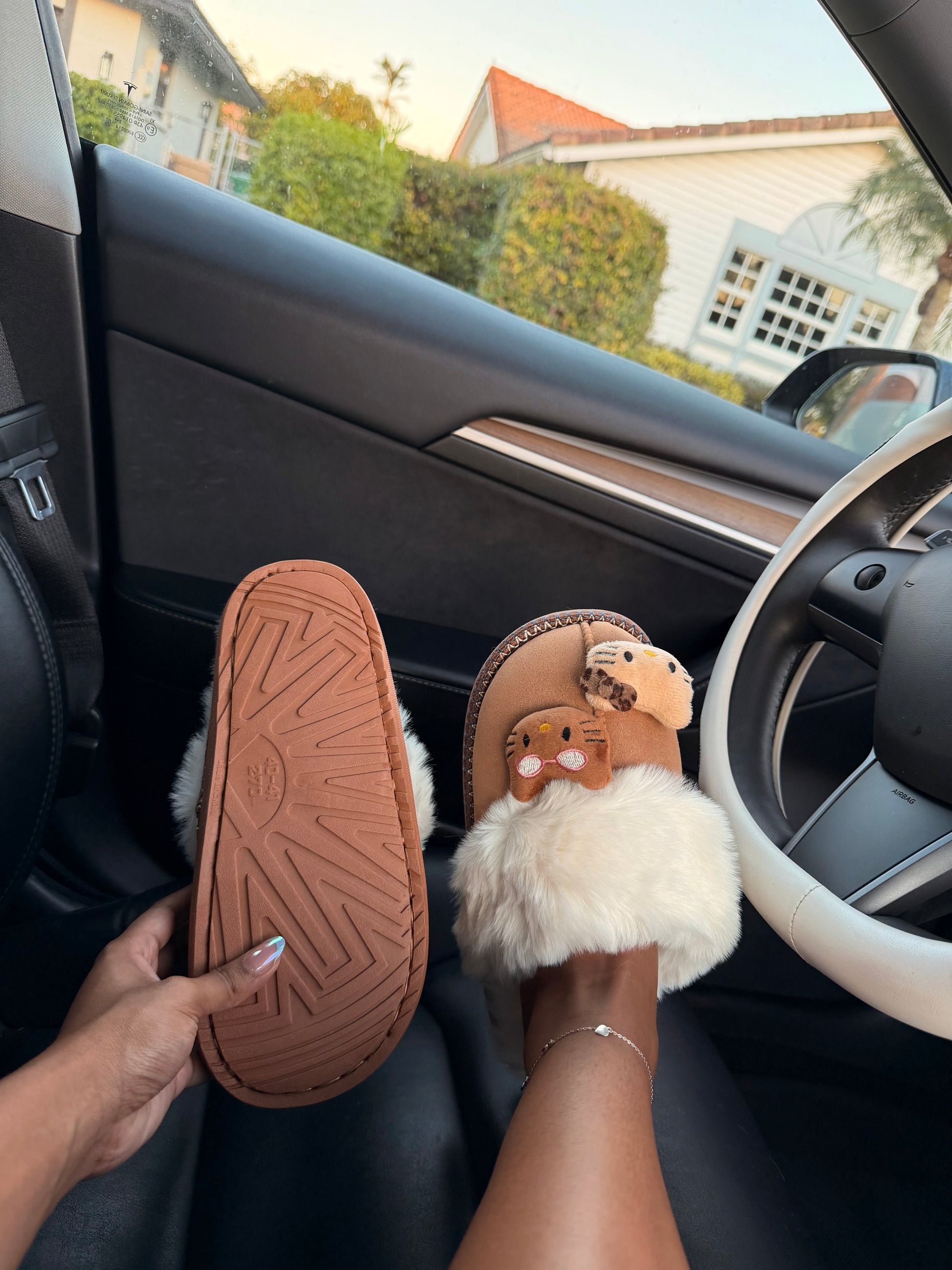 Keep your feet warm and adorable all season with our Cozy Kitty Plush Slippers! Designed with ultra-soft faux fur, a comfy suede-style exterior, and plush kitty charms on the front, these slippers bring the perfect mix of comfort, cuteness, and winter vibes.